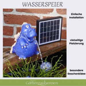 Schön das der Wasserspeier ein gemütliches plätschern hervorzaubert. Durch die maritime blaue Lasur des Drachenkörpers und das wasserspeiende Maul ist der Pumpenschlauch so eingezogen das der Wasserspeier, je nach Einstellung an der Pumpe, im hohen Bogen das Wasser zielgenau in Ihren Zimmerbrunnen speit. Ihr neuer freundlicher Wasserspeier mit den lustigen Augen zieht jeden in seinen Bann.
